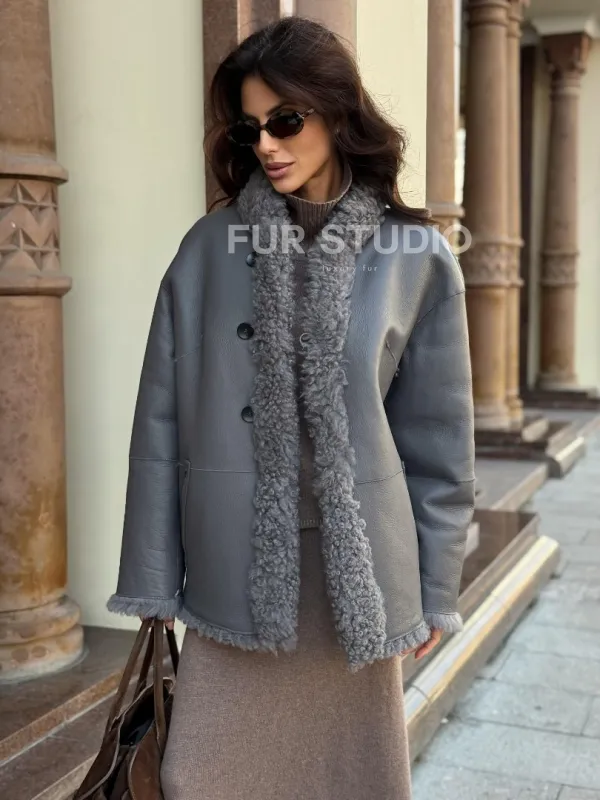 Дубленка серого цвета - двухсторонняя доступна для покупки в нашем шоуруме Furs Studio в , а также предлагается удобная доставка во все города России. Обогатите свой гардероб этой дубленкой, которая прослужит вам многие годы, добавив немного роскоши в ваш повседневный образ.