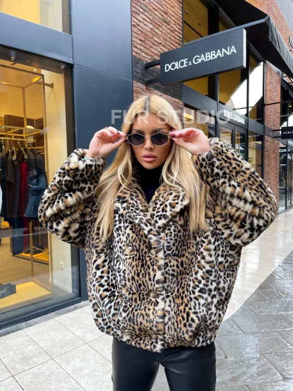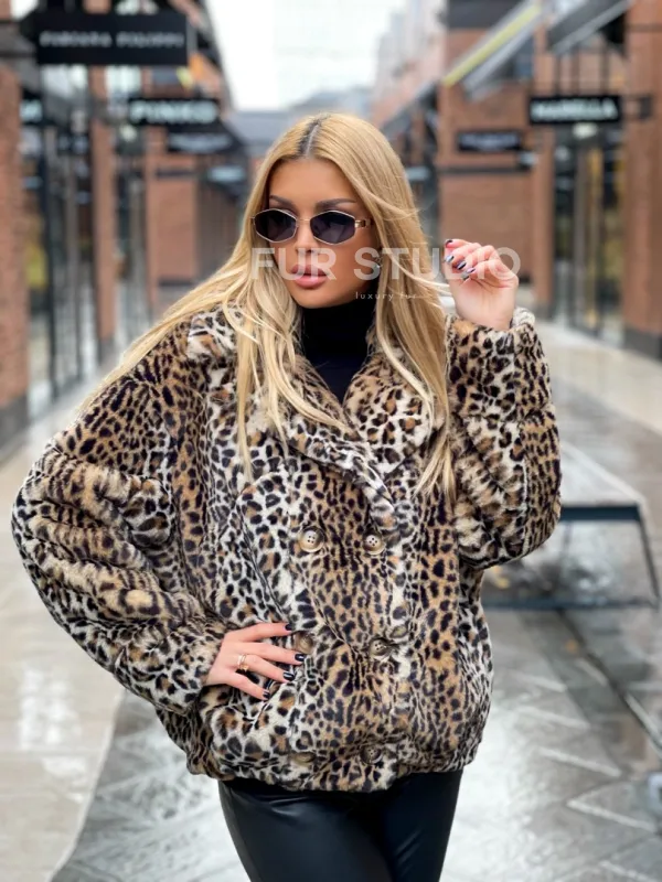 Короткая шуба под леопард из экомеха 100198