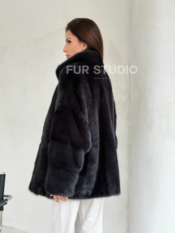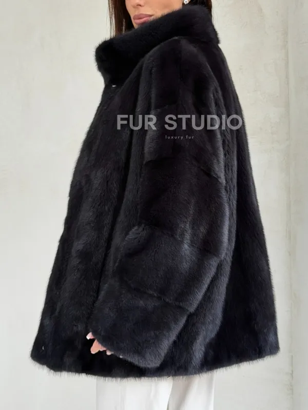 Норковый полушубок графит - стойка воротник 102702