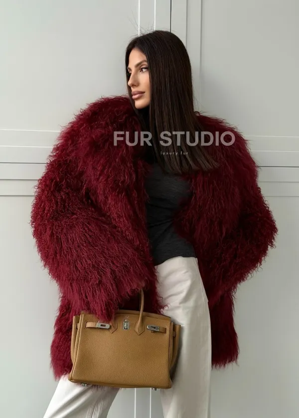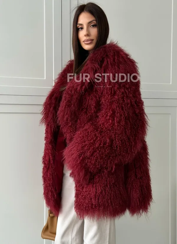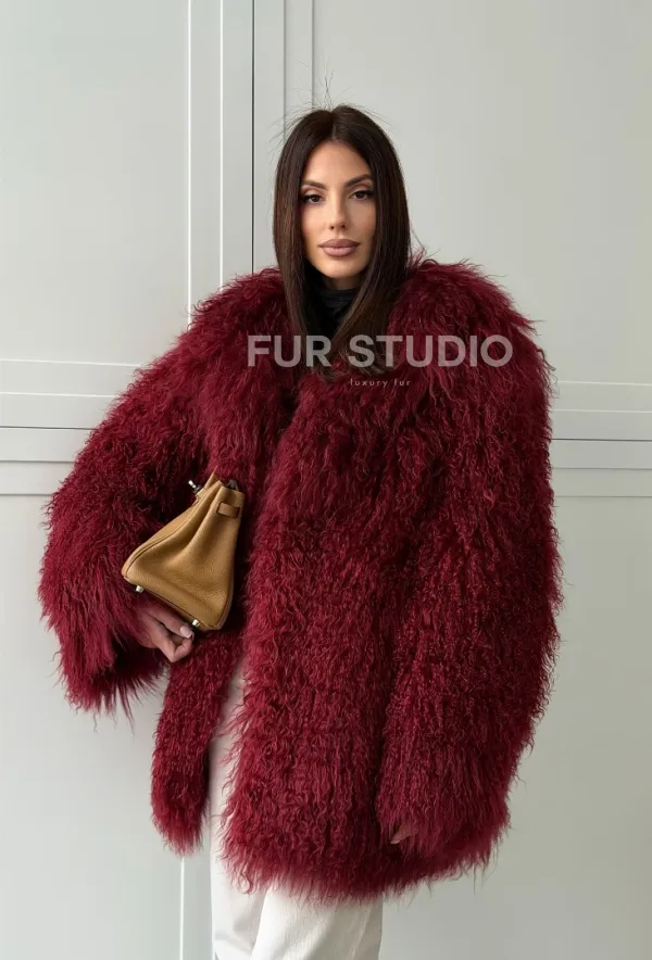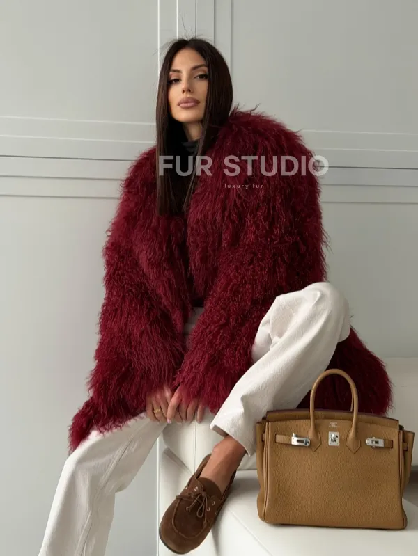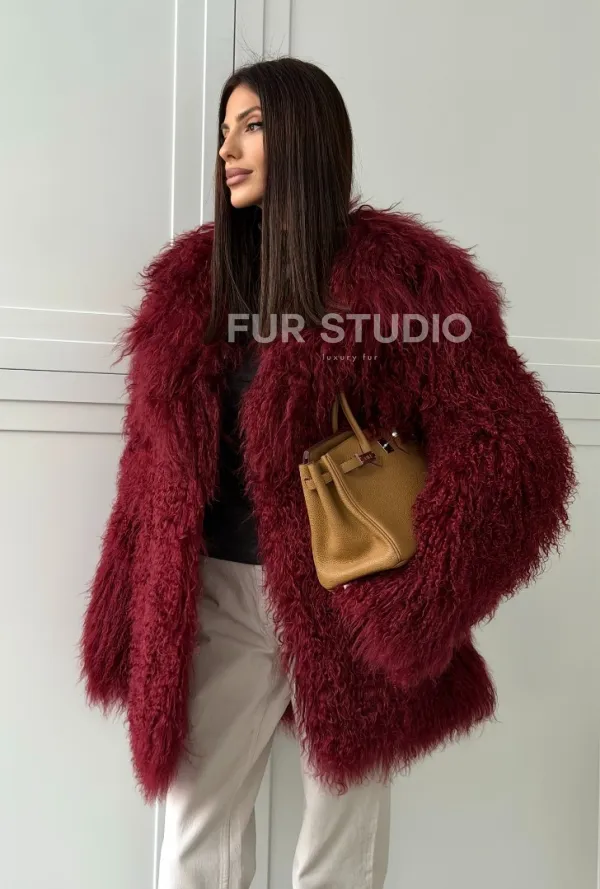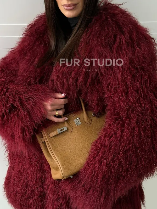 Шуба из ламы PREMIUM - бургунди 102814