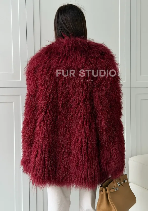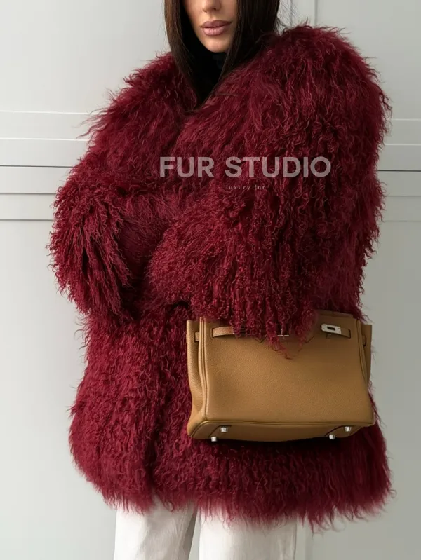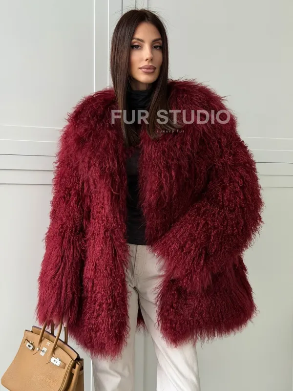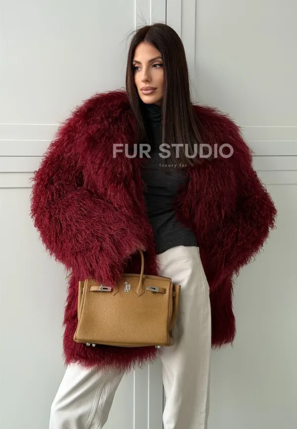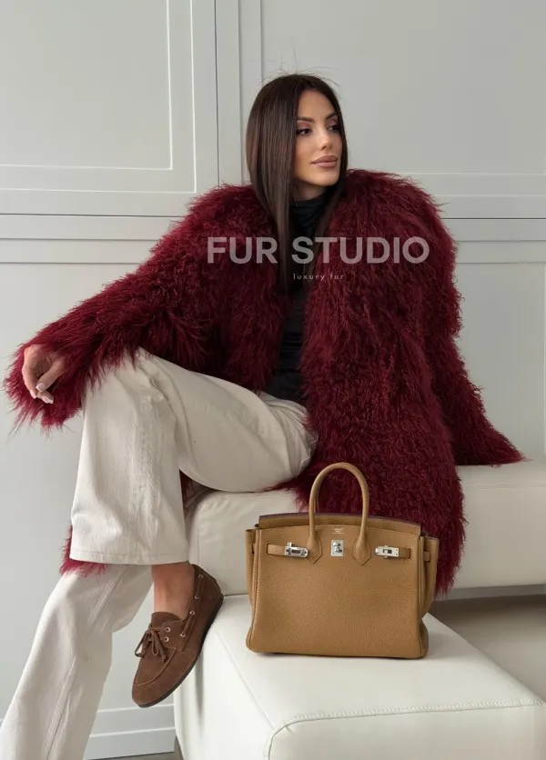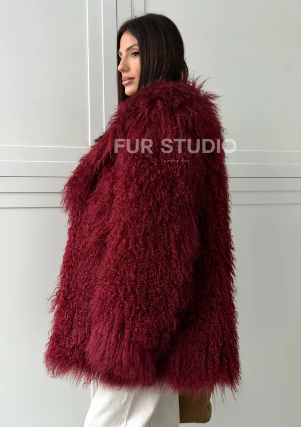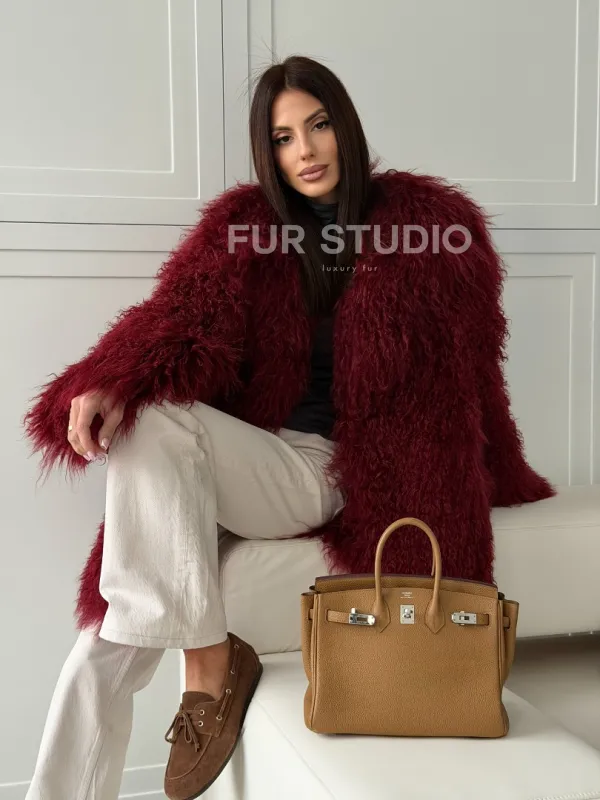 Шуба из ламы PREMIUM - бургунди 102814